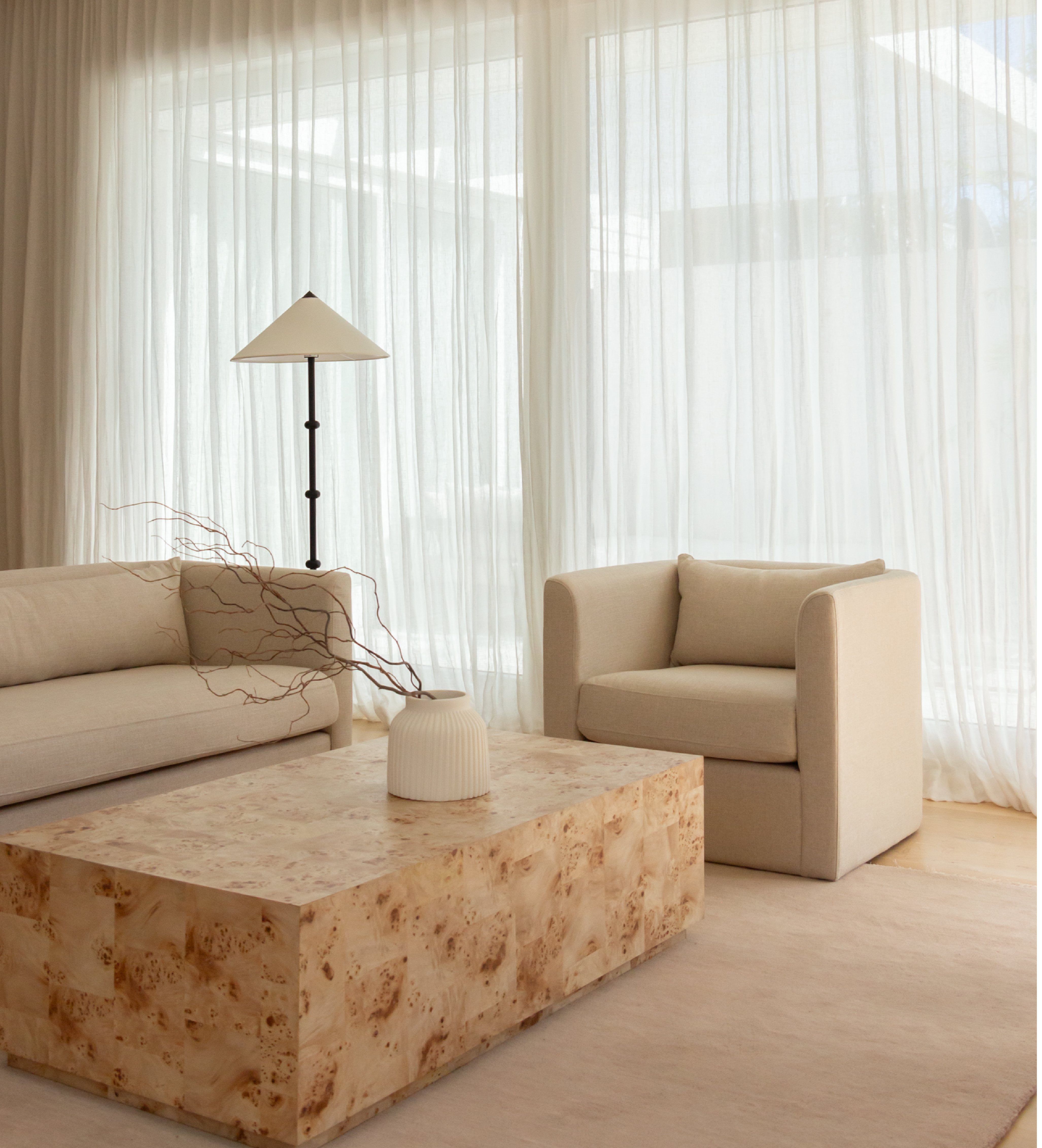 You will receive a personalised mood-board with furniture and styling options, a floor plan with proposed furniture positioning and itemised pricing including lead times for deliveries.